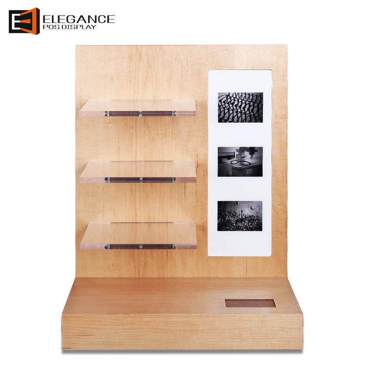 工廠定制的天然木地板和柜臺展示架,用于眼鏡,太陽鏡和鏡片